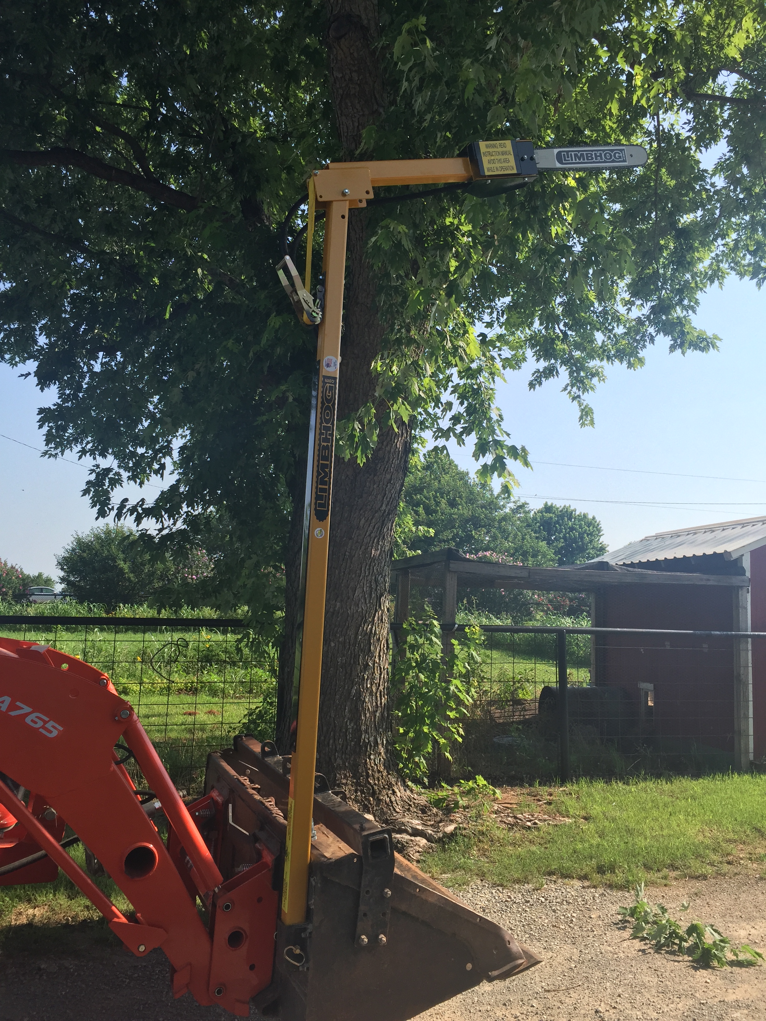 The Limbhog is a fast, safe, and easy to use tool that simply attaches to the front end loader bucket on your tractor and functions using your auxiliary hydraulics. It runs at 5,000 RPM and it's capable of cutting 5-inch diameter limbs in just over one second. In only one hour, it's capable of trimming 20 medium sized trees.